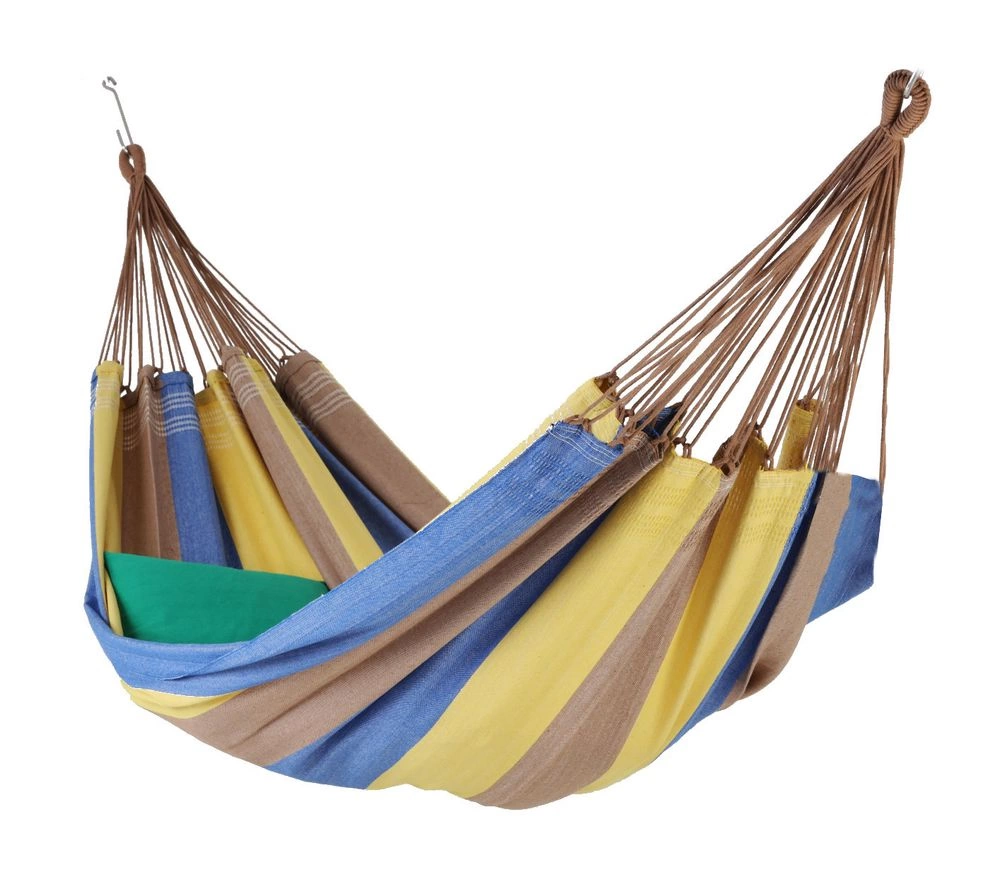 Ce hamac au charme discret et subtil est un petit nid tranquille aux couleurs naturelles, très douillet grâce à son tissu 100% coton. Il s’agit d’un hamac simple pour une personne. Sa largeur est de 140 cm et convient pour un adulte dont la taille maximum sera d’environ 1 m 80.