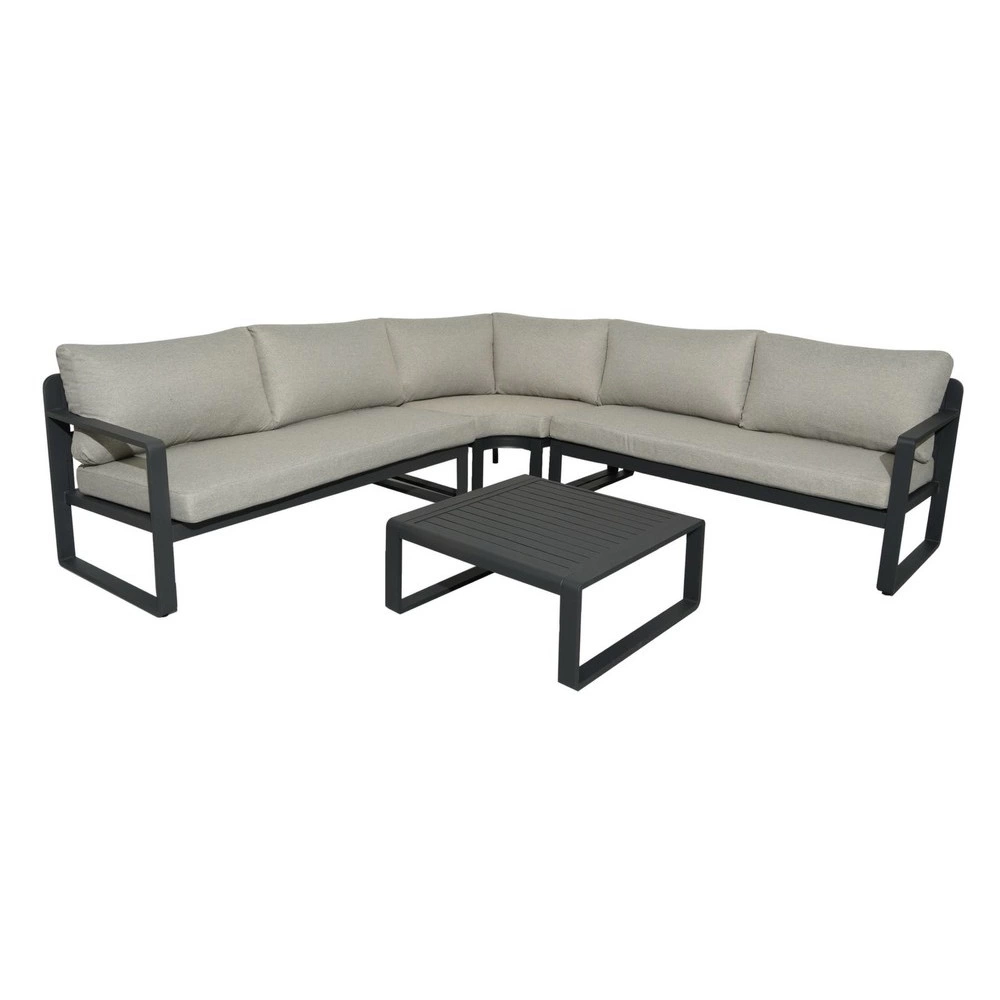 Salon de jardin sofa - TURQUIA - en aluminium anthracite - Set complet 3+2 places
