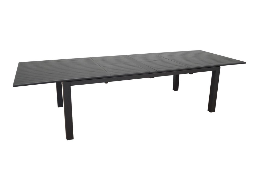 Table à manger extensible en aluminium - MALI - finition anthracite - plateau imitation bois - 180 par 240 cm - 6 à 10 places