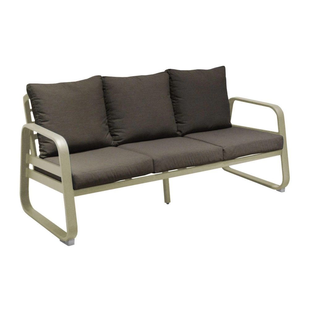 Canapé de jardin 3 places Tonio miel/gris - Aluminium - coussins acrylique