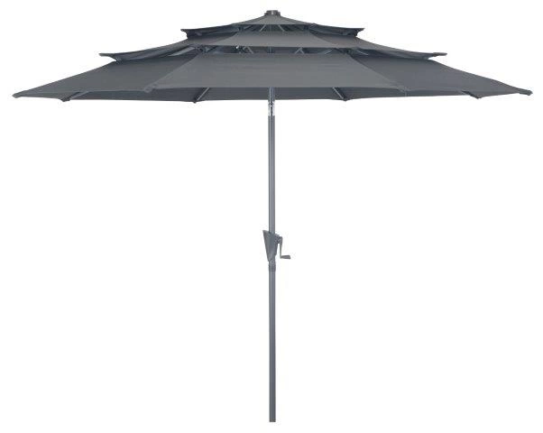 Parasol déporté Pagode - Diamètre 300 cm - Aluminium - Toile grise