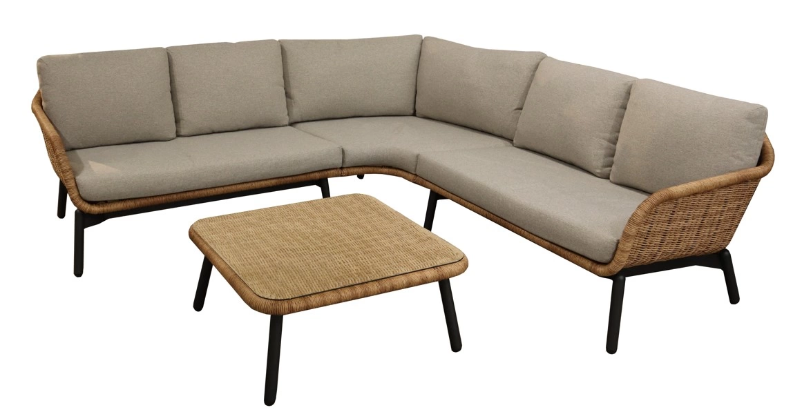 Set angle Tornado en aluminium/wicker avec coussins - graph/naturel/beige
