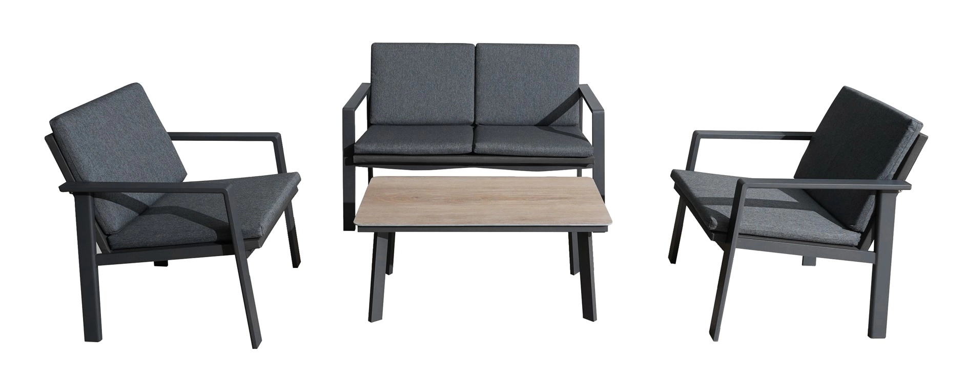 Salon de jardin sofa - CASABLANCA - en aluminium anthracite - Canapé 2 places, 2 fauteuils et table basse - 4 et 5 places