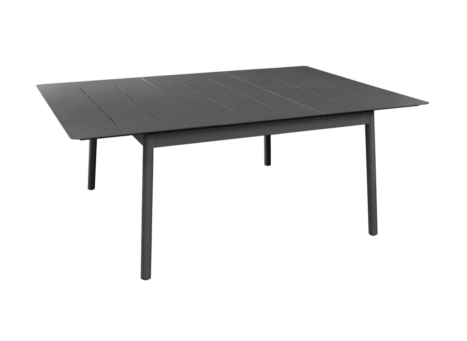 Table à manger extensible en aluminium - MALI - finition anthracite - plateau imitation bois - 180 par 240 cm - 6 à 10 places