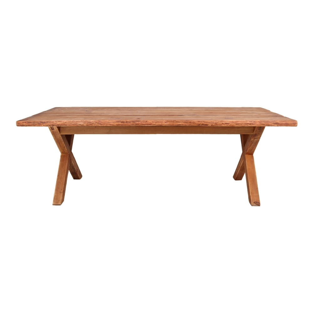 OFFERTLa table MOD-089, de style vintage, fabriquée en bois de pin recyclé massif, est une pièce unique alliant artisanat et éco-responsabilité. Ses pieds en forme de croix ajoutent une touche vintage et robuste, tandis que le bois, traité contre les vers à bois, présente des marques et irrégularités typiques de son passé, renforçant son authenticité.