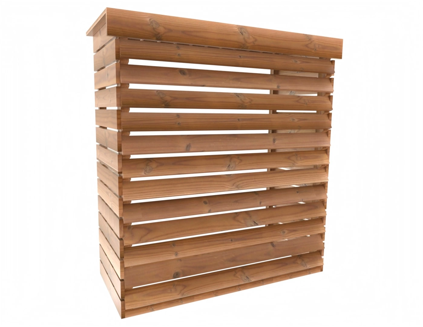 Cache climatiseur extérieur - Bois thermochauffé - Ventelles fixes - Fixation murale ou au sol - 0,77 m²
