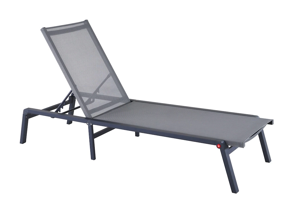 Fauteuil chilienne avec repose-pieds - PAUL - finition anthracite - tissu polyester gris - 1 place