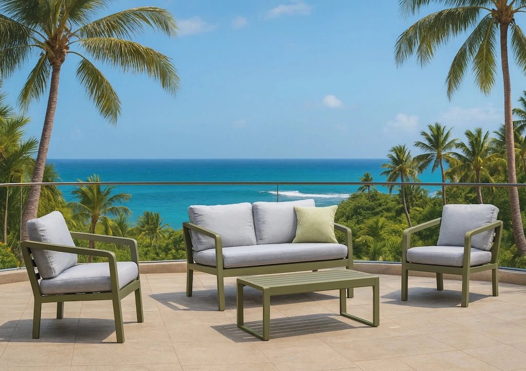 Fabriqué artisanalement en Espagne dans les ateliers HEVEA, le salon PORTOFINO-7 LUX bénéficie d’une structure 100 % aluminium conçue pour résister aux conditions extérieures. Les coussins LUX déhoussables, en tissu acrylique haute qualité, assurent un confort durable, une excellente tenue des couleurs face aux UV et un entretien facile.