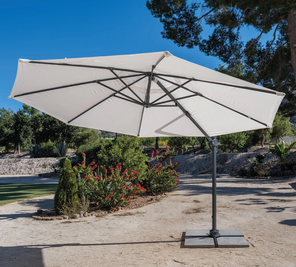 Parasol déporté VIENA-300 – Aluminium finition anthracite – Toile beige