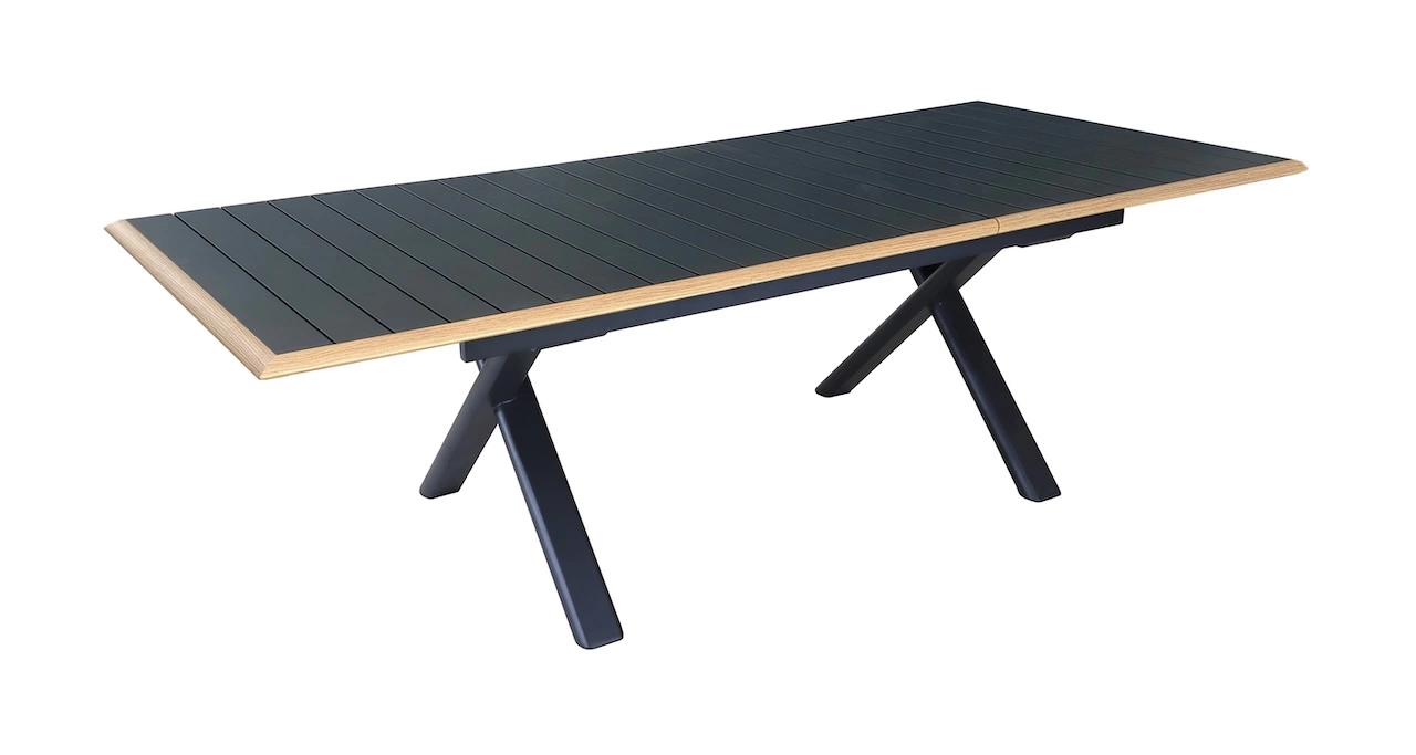 Table de jardin Vita graphite/lucca en Alu 180/240x100 cm - plateau à lames Kedra