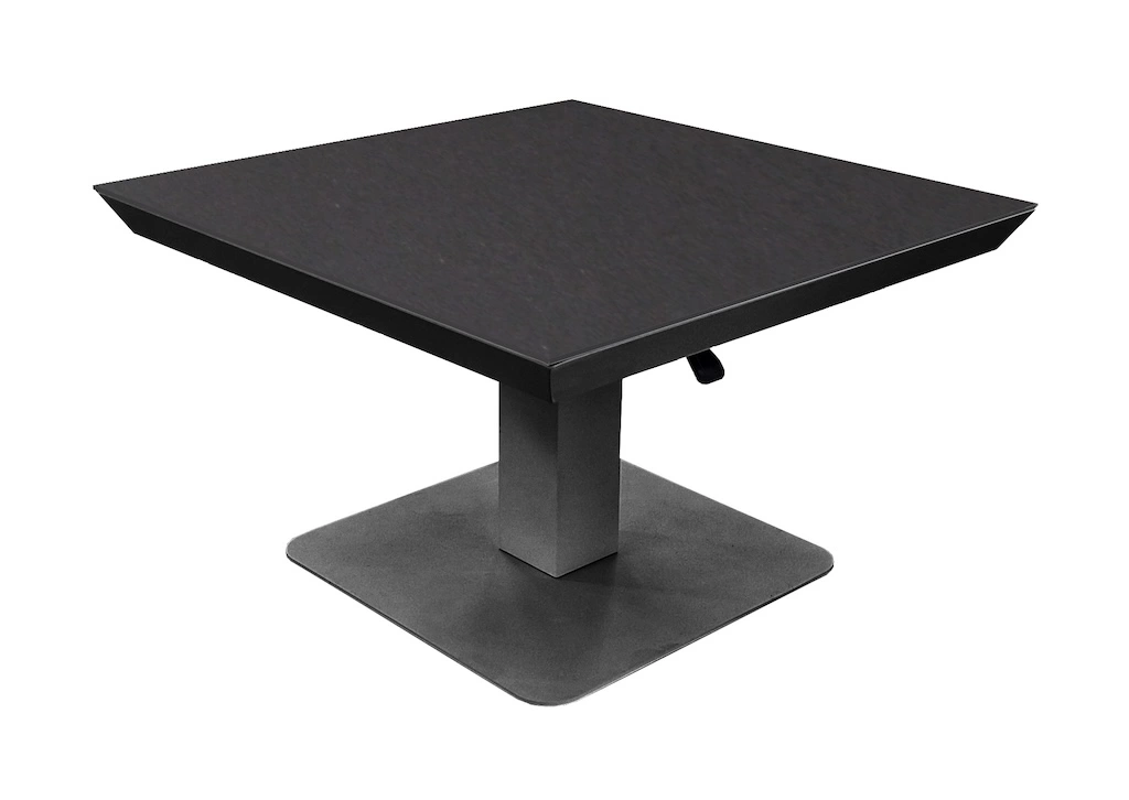 Grâce à son système de piston à air intégré, la hauteur se règle facilement de 43 à 69 cm. Cette table carrée passe ainsi d’une table basse conviviale à une table repas pratique pour 2 à 4 personnes, idéale pour optimiser un espace salon ou terrasse.