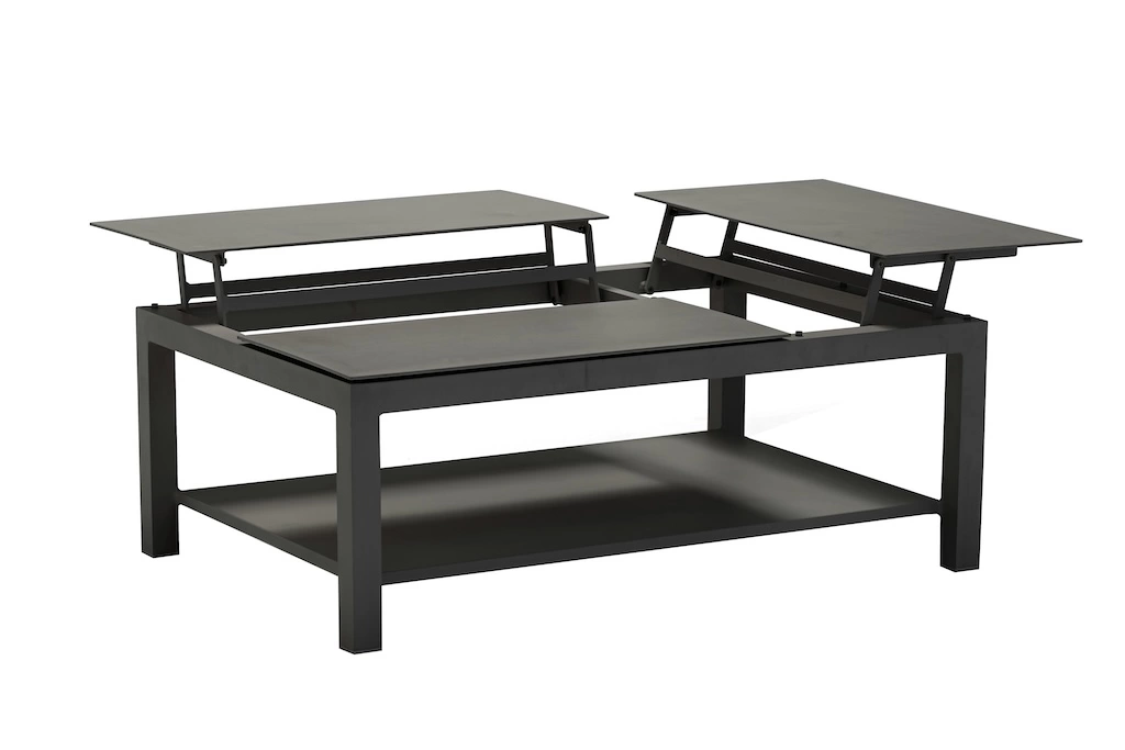 OFFERTLa table basse BUTTERFLY élévatrice en finition graphite séduit par son design contemporain et sa grande modularité. Elle s’intègre parfaitement dans un salon de jardin moderne et offre une solution pratique pour optimiser votre espace extérieur.